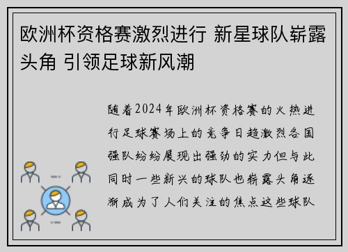 随着2024年欧洲杯资格赛的火热进行,足...