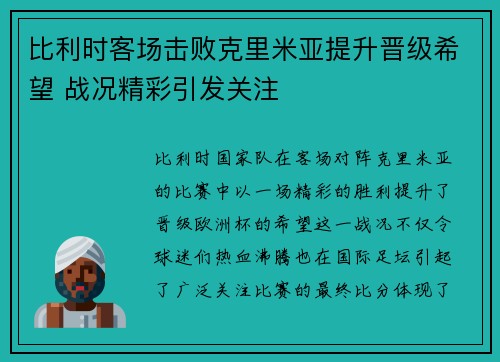 比利时国家队在客场对阵克里米亚的比赛中以...