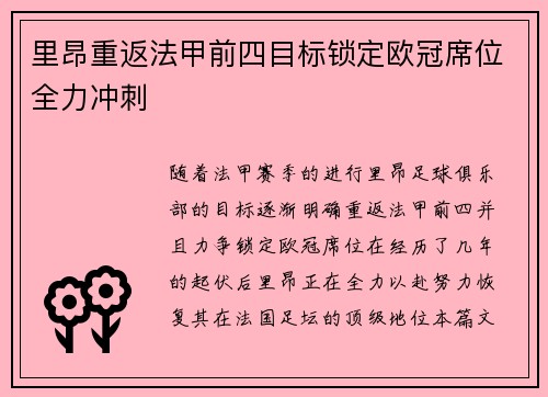 随着法甲赛季的进行,里昂足球俱乐部的目标...